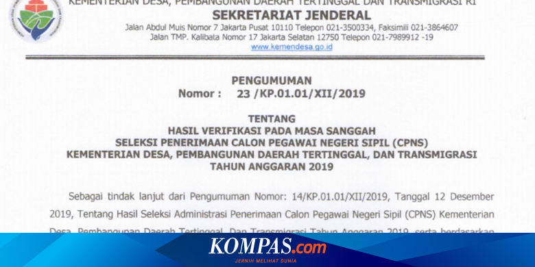 Kemendes Pdtt Umumkan Hasil Verifikasi Sanggahan Cpns 2019 Ini Informasinya Halaman All Kompas Com