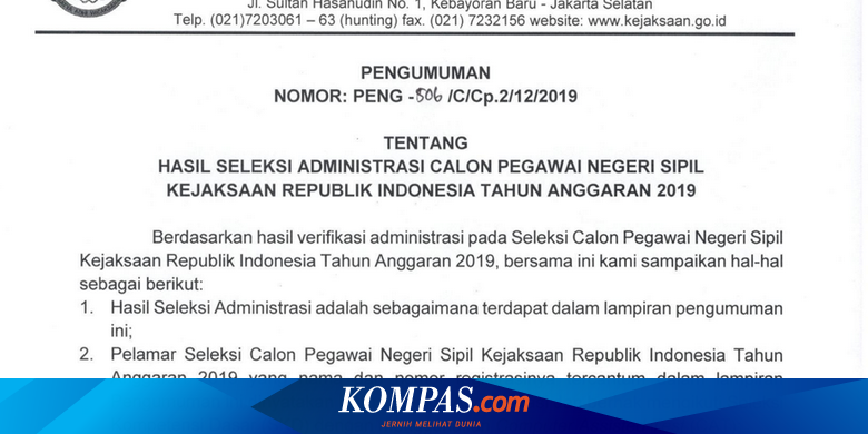 29 000 Pelamar Lolos Administrasi Cpns Kejaksaan Agung Cek Hasilnya Halaman All Kompas Com