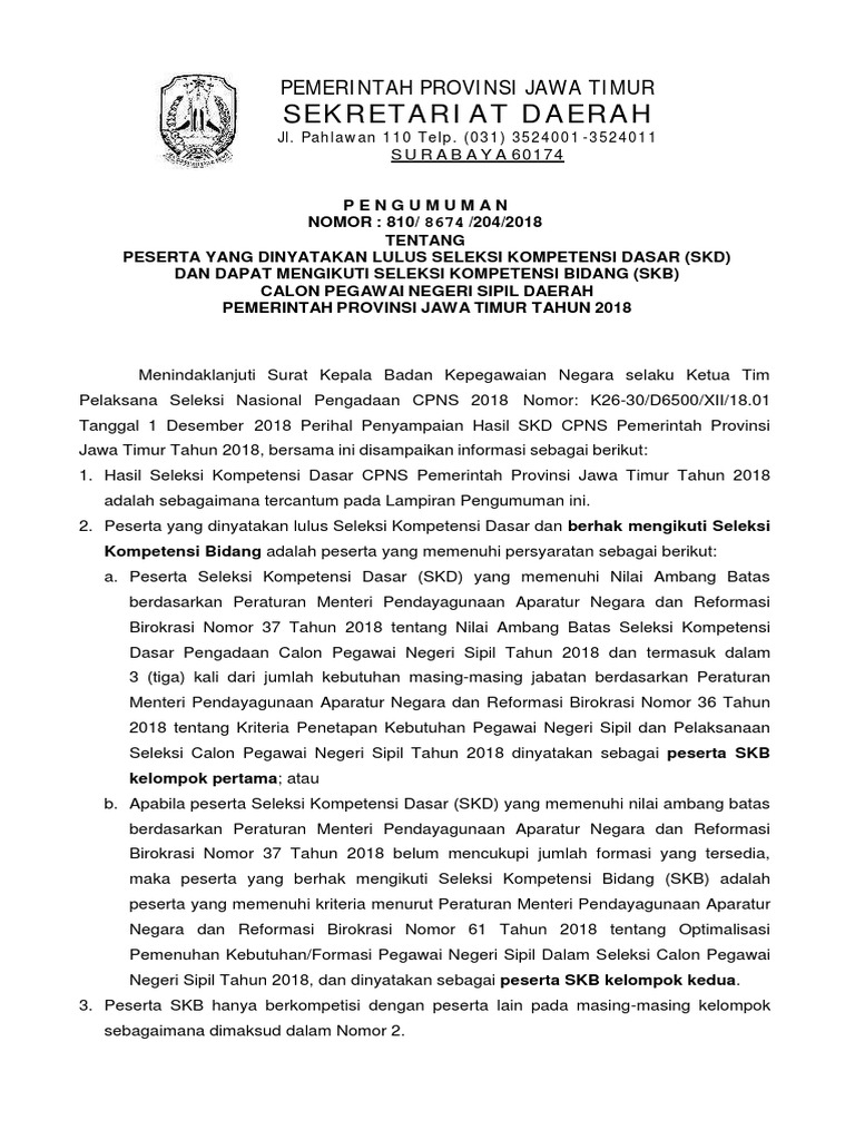 Pdf Pengumuman Skb Cpns Pemprov Jatim Santi Kusumawati Academia Edu