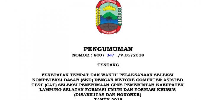 Pengumuman Jadwal Dan Tata Tertib Skd Cpns Kabupaten Lampung Selatan Formasi Tahun 2019 Pemkab Lampung Selatan