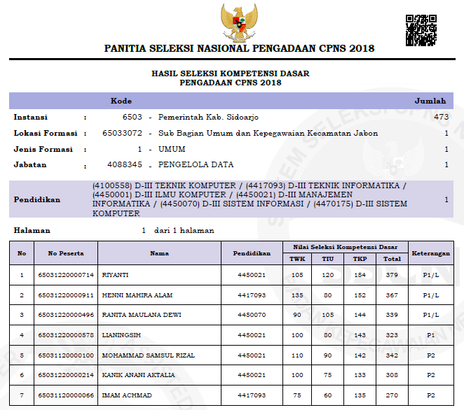 Pengumuman Hasil Tes Skd Cpns Kabupaten Sidoarjo 2018