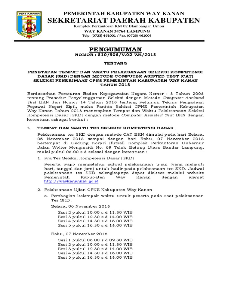 Pengumuman Hasil Skd Cat Cpns Pemkab Way Kanan Archives Informasi Cpns