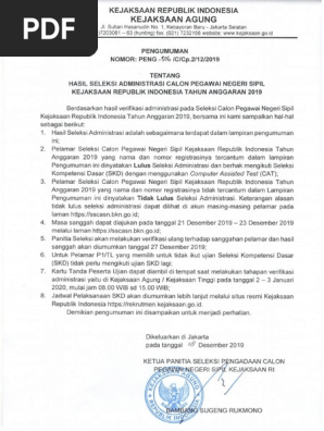 Pengumuman Hasil Seleksi Administrasi Pengadaan Cpns Kejaksaan Ri 2019 Pdf
