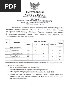 Pengumuman Dan Formasi Cpns Kab Gresik 2018 Fix Doc