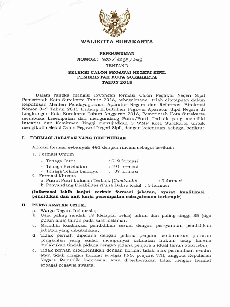 Pengumuman Cpns 2018 Pemerintah Kota Surakarta Pdf
