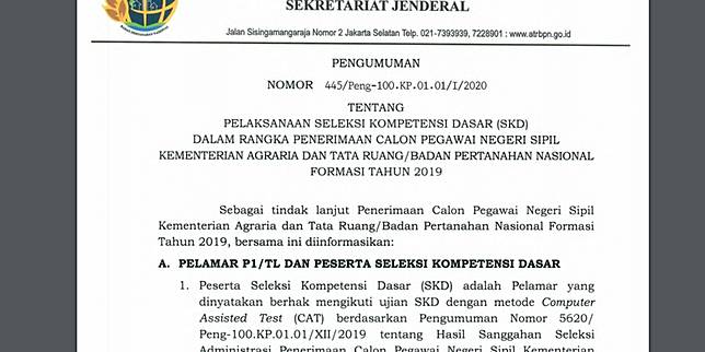 Pengumuman Hasil Seleksi Administrasi Cpns Kementerian Agraria Tata Ruang Download Di Atrbpn Go Id Tribun Jogja