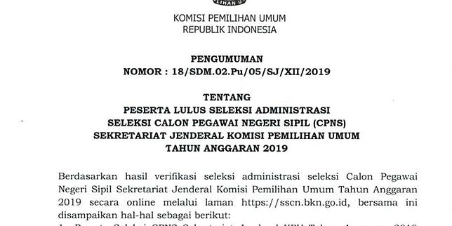 Pengumuman Hasil Seleksi Administrasi Cpns Kpu Tahun 2019