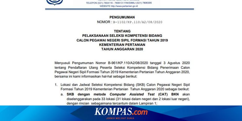 Skb Cpns Kementan Gunakan Metode Cat Dan Non Cat Berikut Link Nya Halaman All Kompas Com