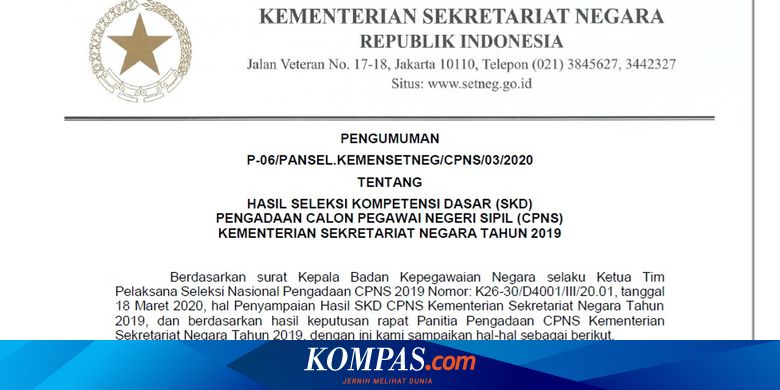 Hasil Skd Cpns Kemensetneg 2019 Diumumkan Ini Informasinya Halaman All Kompas Com
