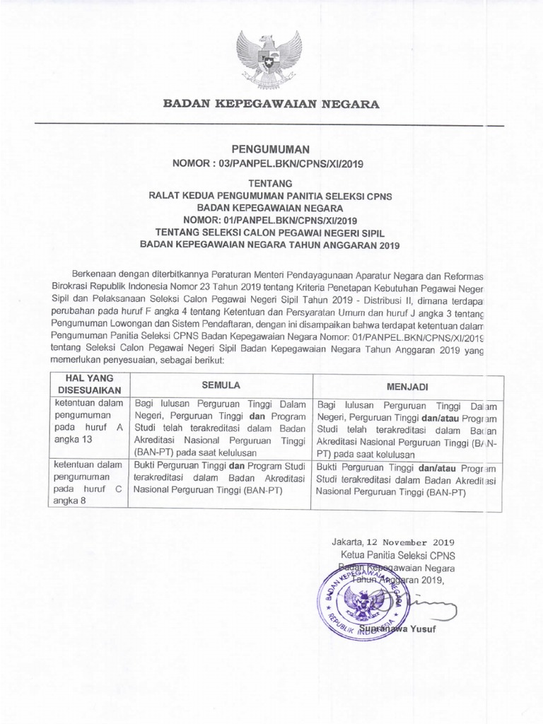 Ralat Ke 2 Pengumuman Cpns Bkn 2019 Badan Kepegawaian Negara