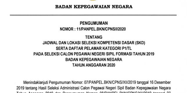 Pengumuman Seleksi Cpns Bkn Tahun 2019 Berkas Edukasi