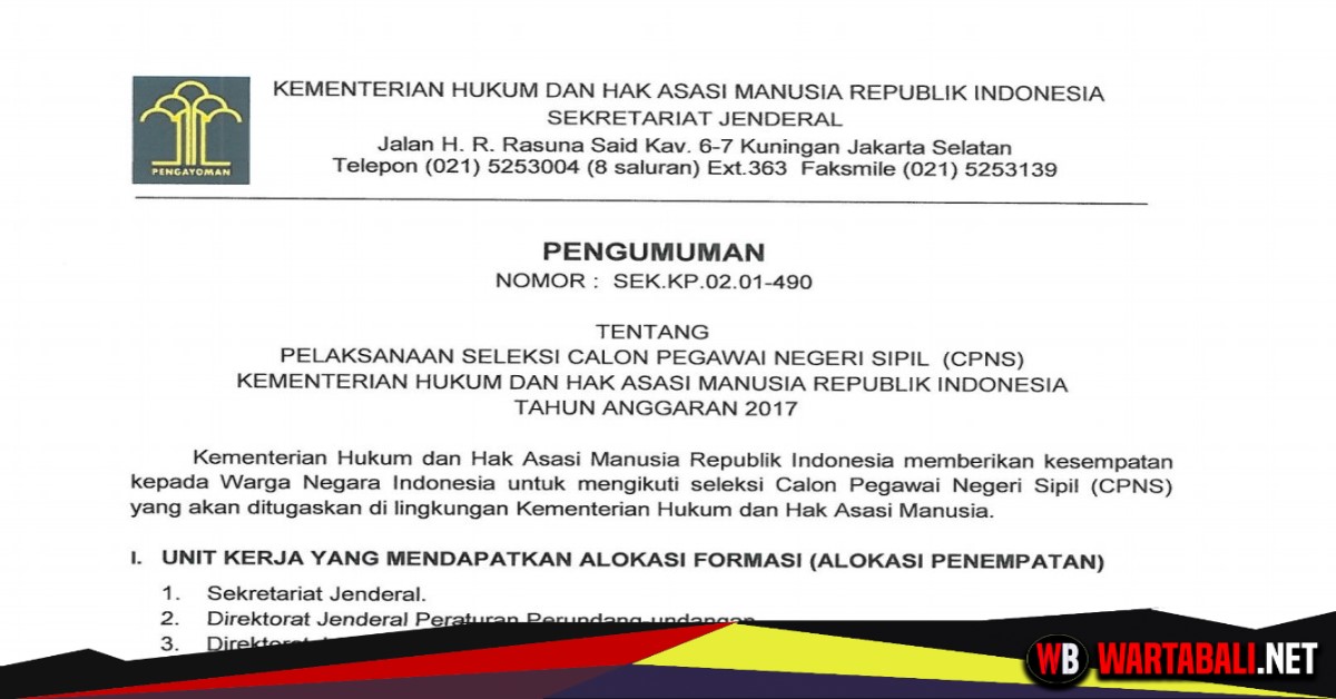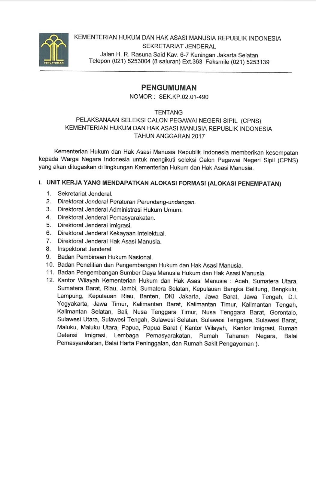 Pengumuman Penerimaan Cpns Kementerian Hukum Dan Ham Kemenkumham Tahun 2017 Singkep Galeri