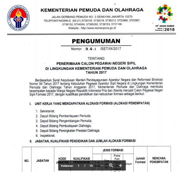 Pengumuman Penerimaan Cpns Kementerian Pemuda Dan Olahraga Tahun 2017 Blog Pak Pandani