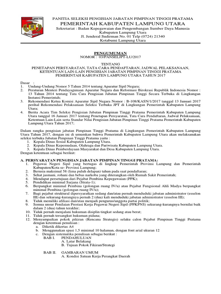 Pengumuman Calon Pejabat Pratama Pemkab Lampung Utara