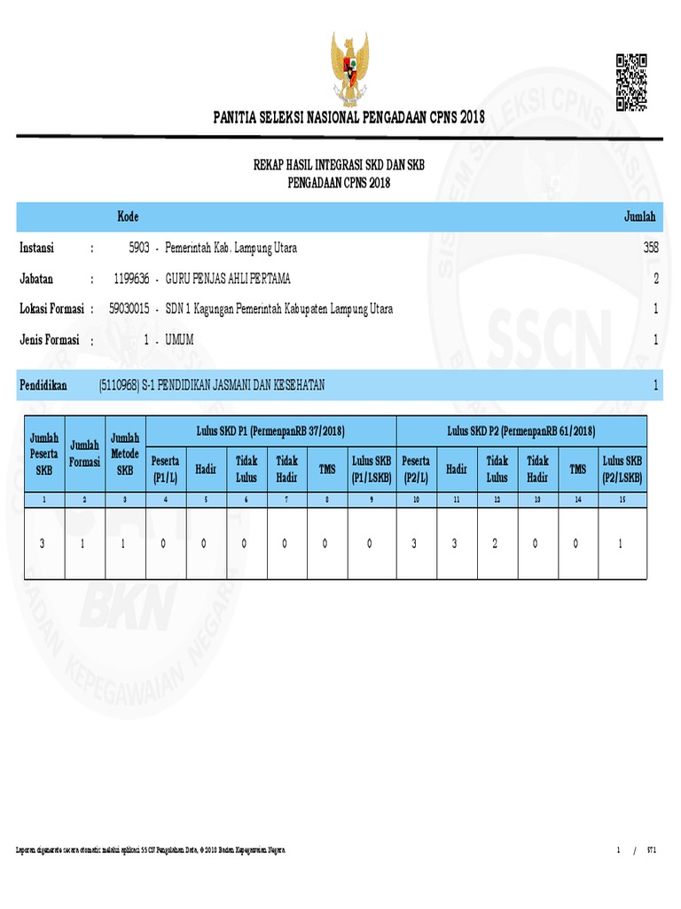 Pengumuman Akhir Tes Skd Skb Cpns Kab Lampung Utara 2019
